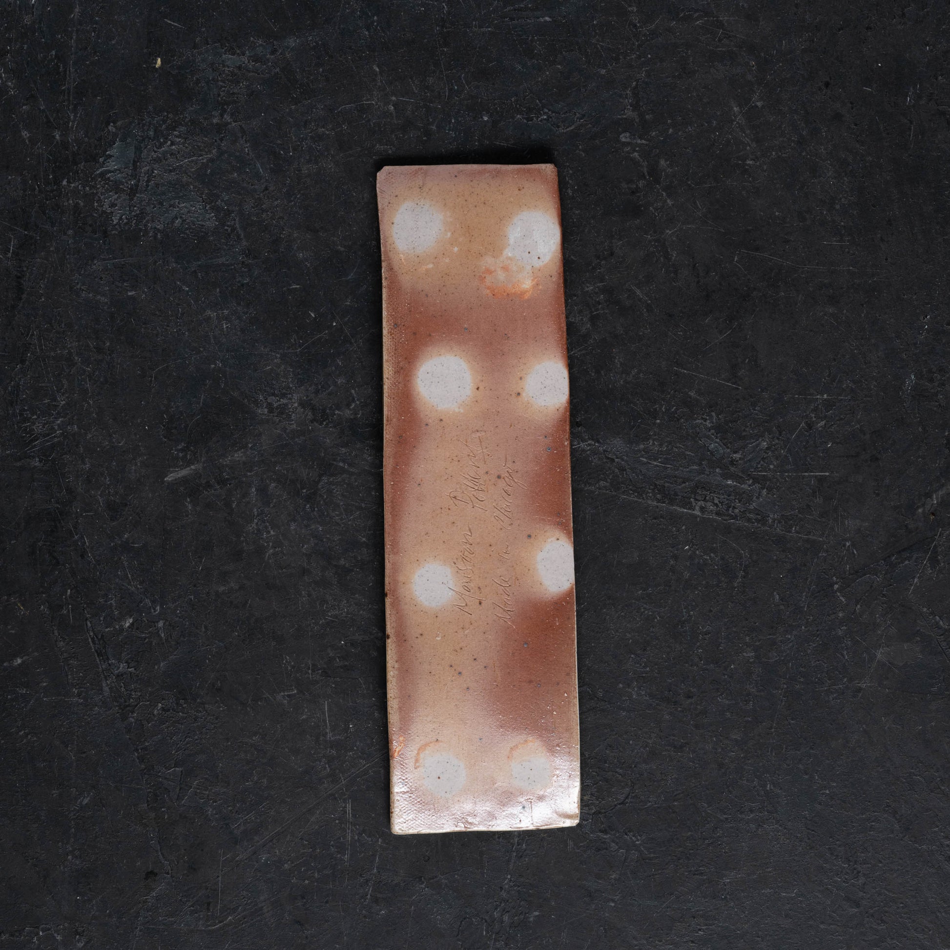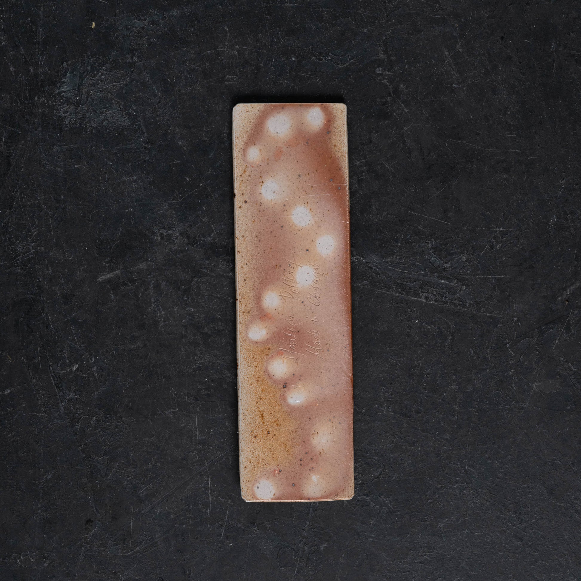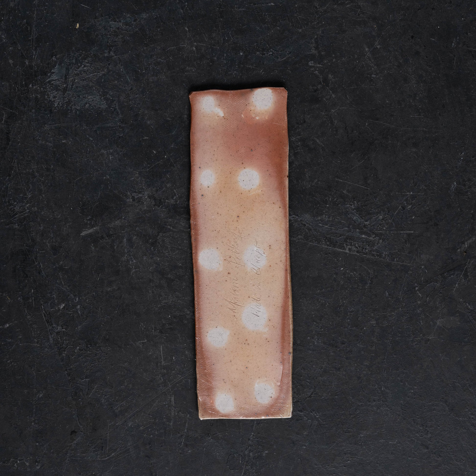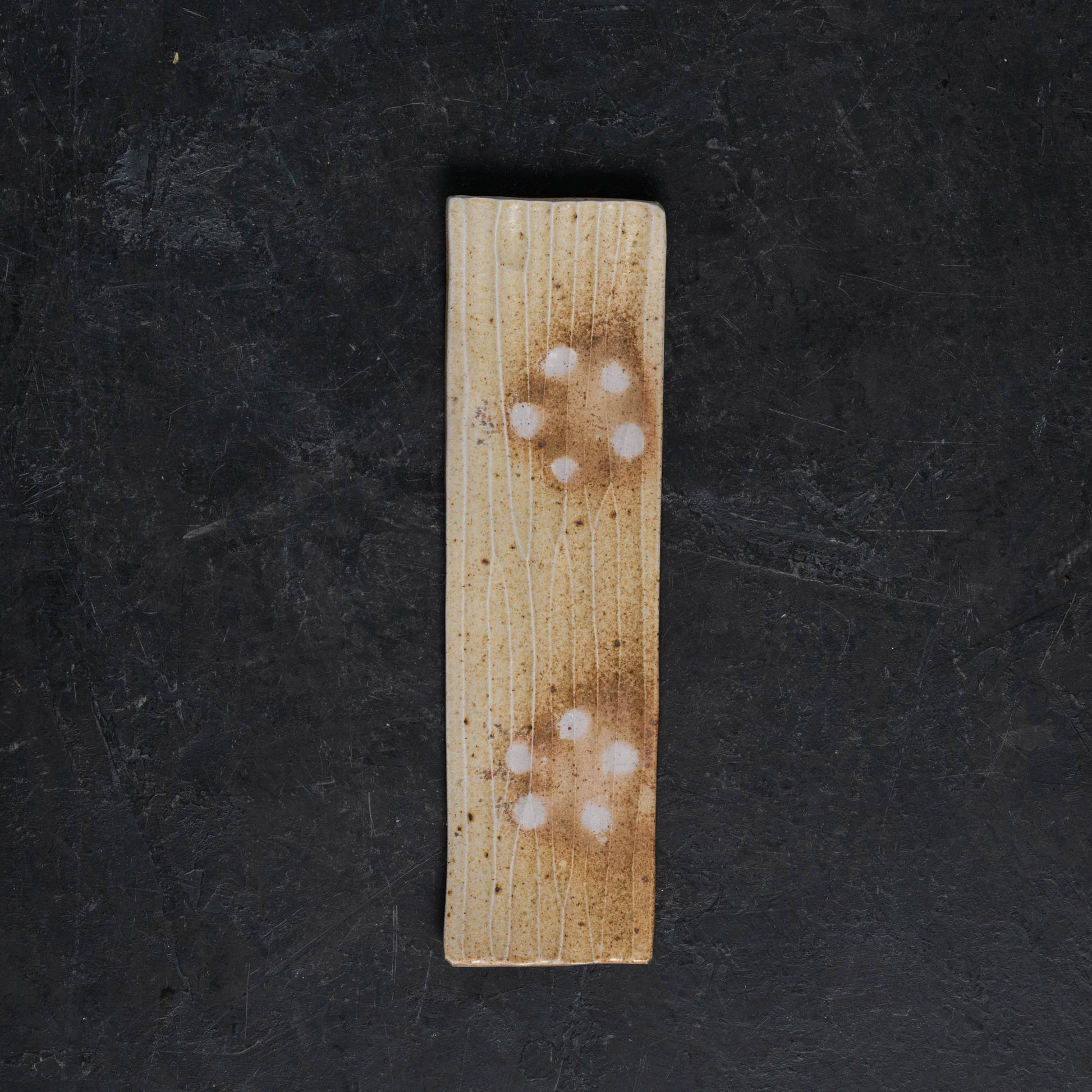 Hand-fluted stoneware slabs formed into rectangular trays. Originally designed as pen trays for a desk, these could also be used for tea snacks, sushi, or whatever else your heart desires. Decorated only with fire, ash, and salt.