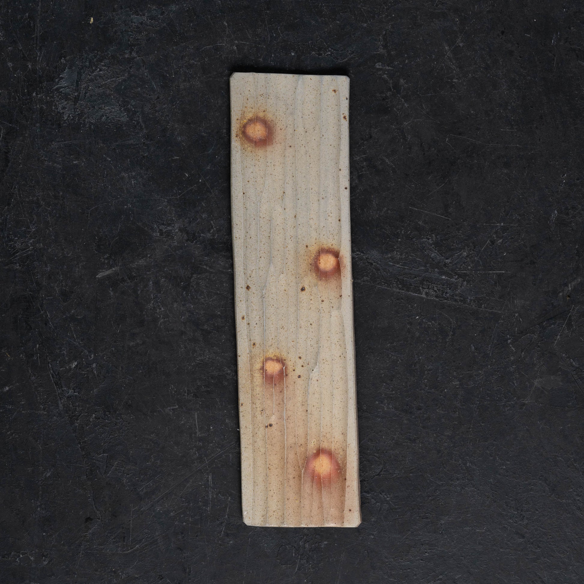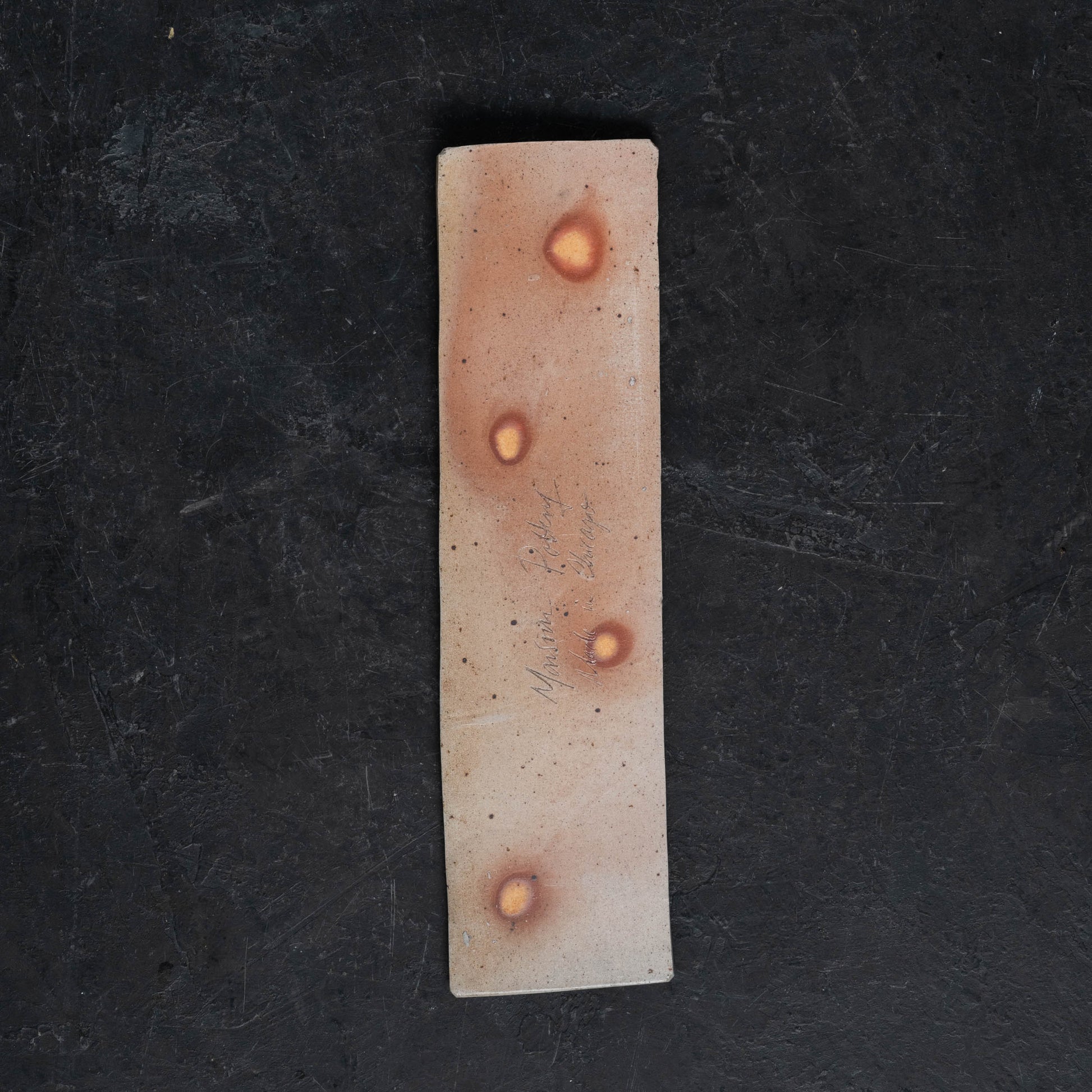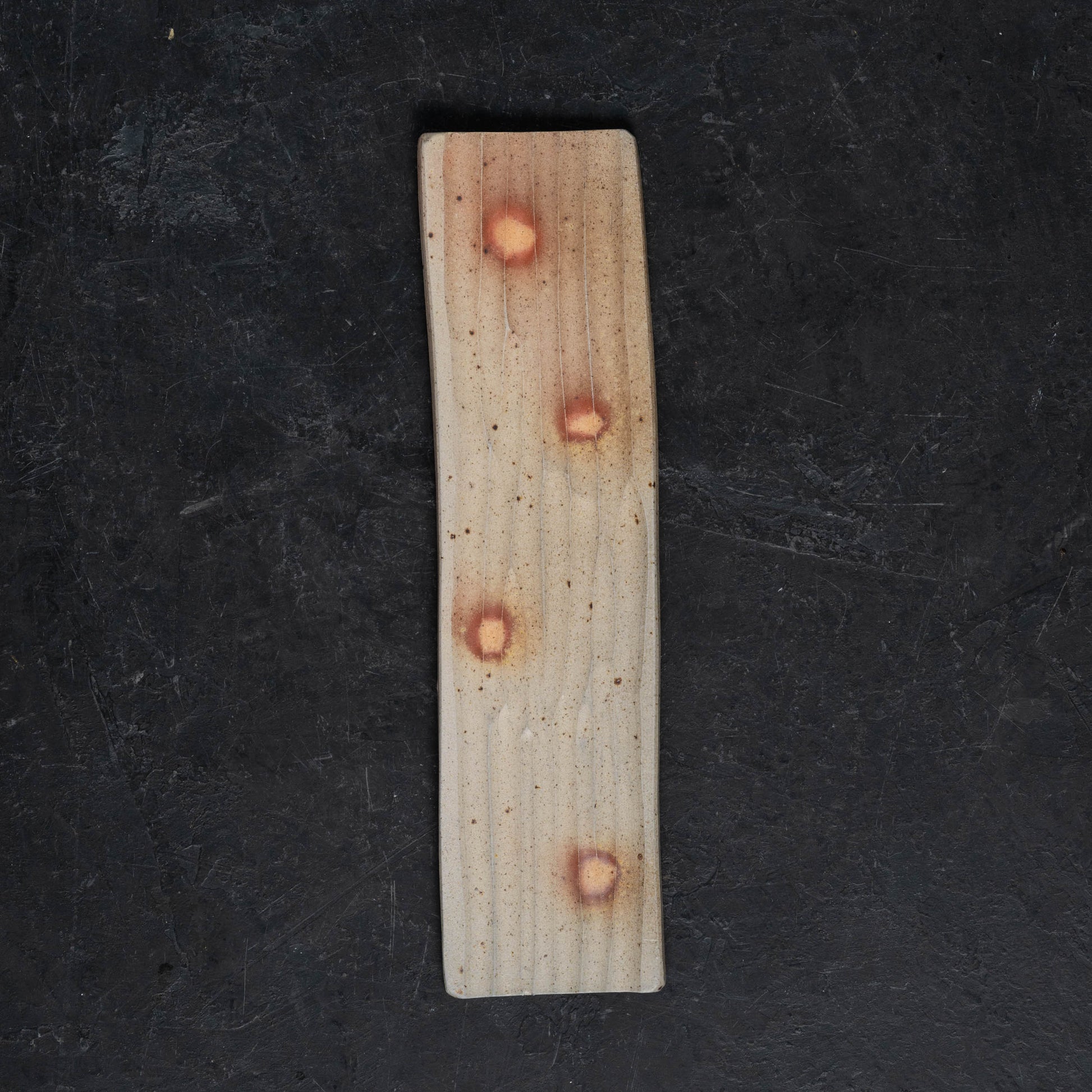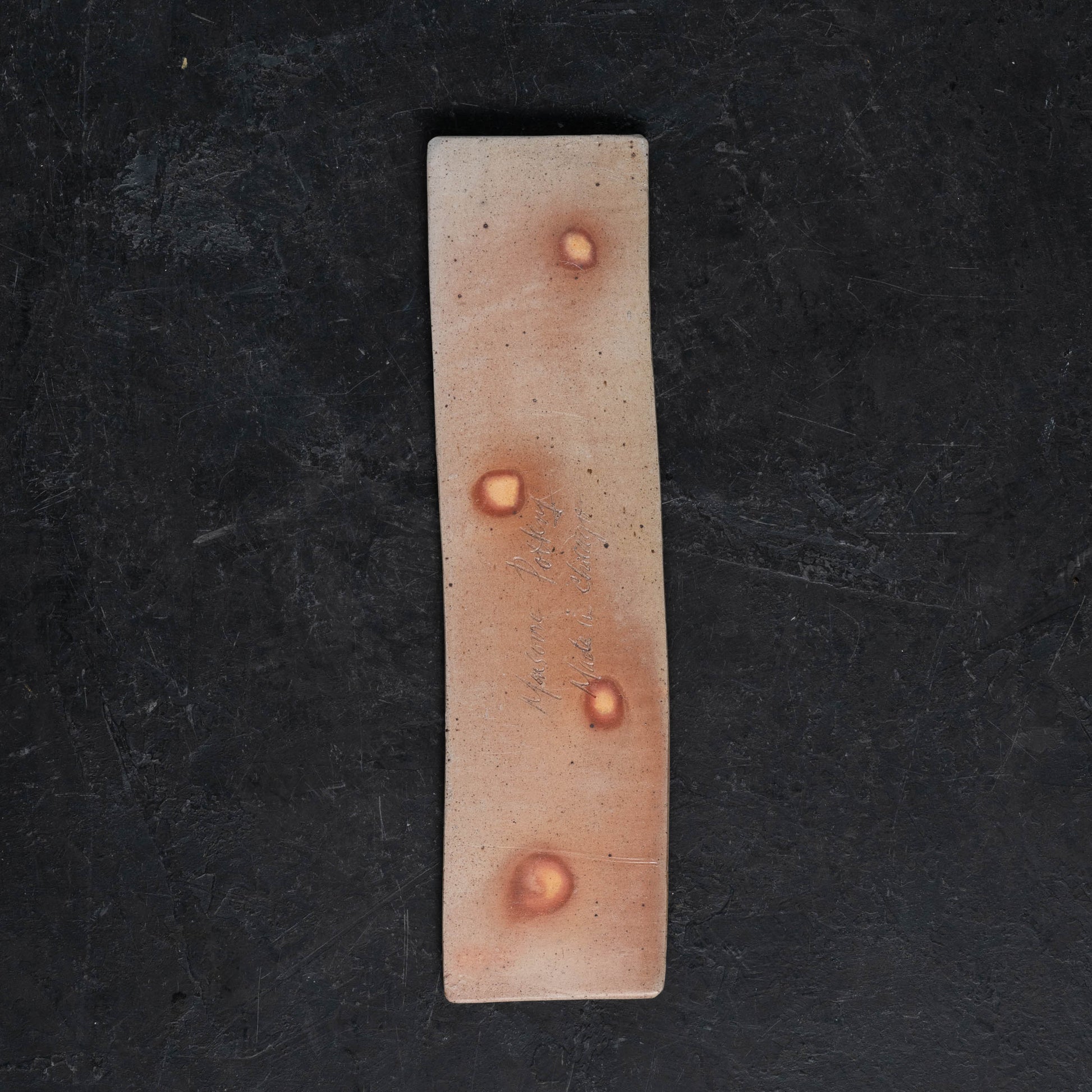Hand-fluted stoneware slabs formed into rectangular trays. Originally designed as pen trays for a desk, these could also be used for tea snacks, sushi, or whatever else your heart desires. Decorated only with fire, ash, and salt. Fired in Dodgeville, WI.