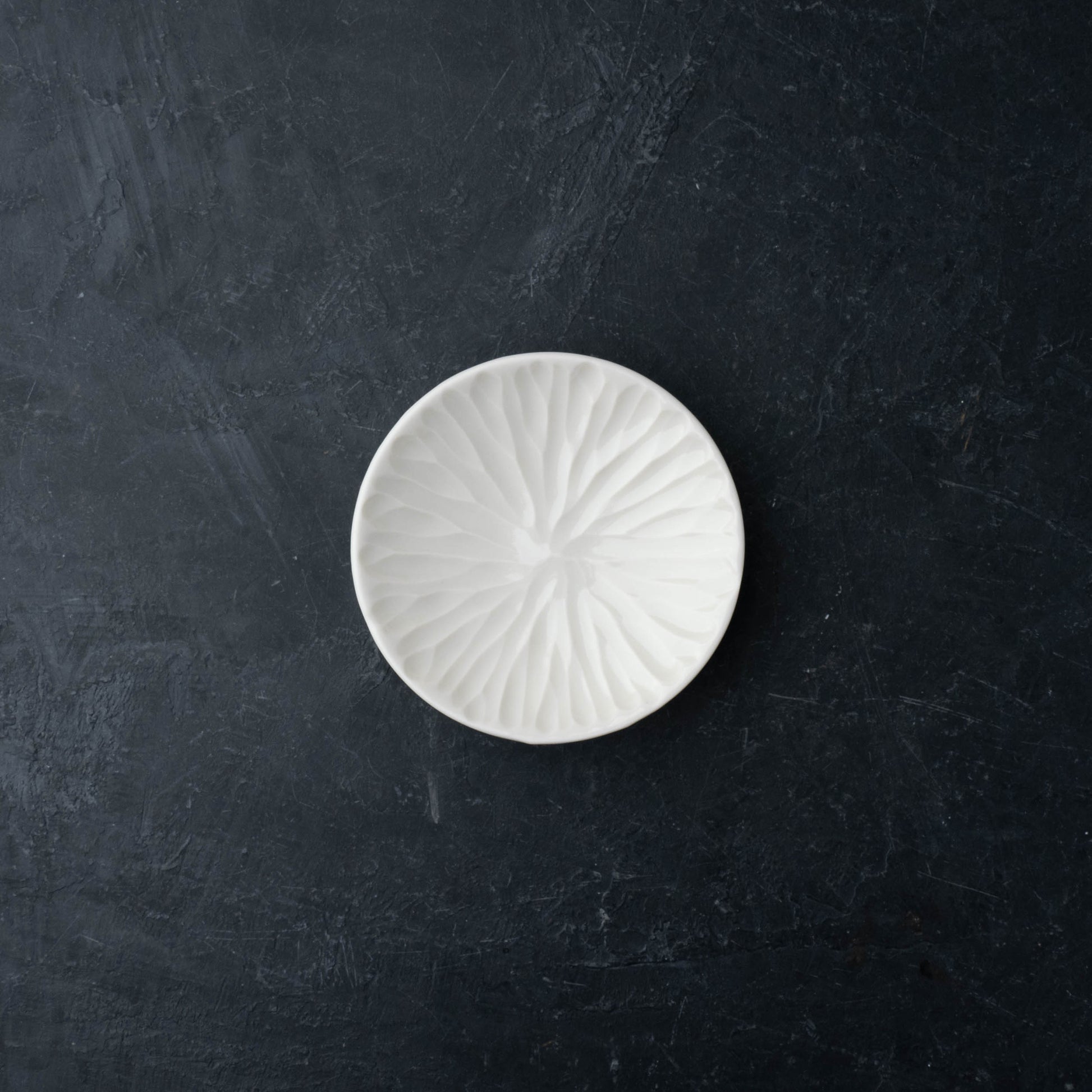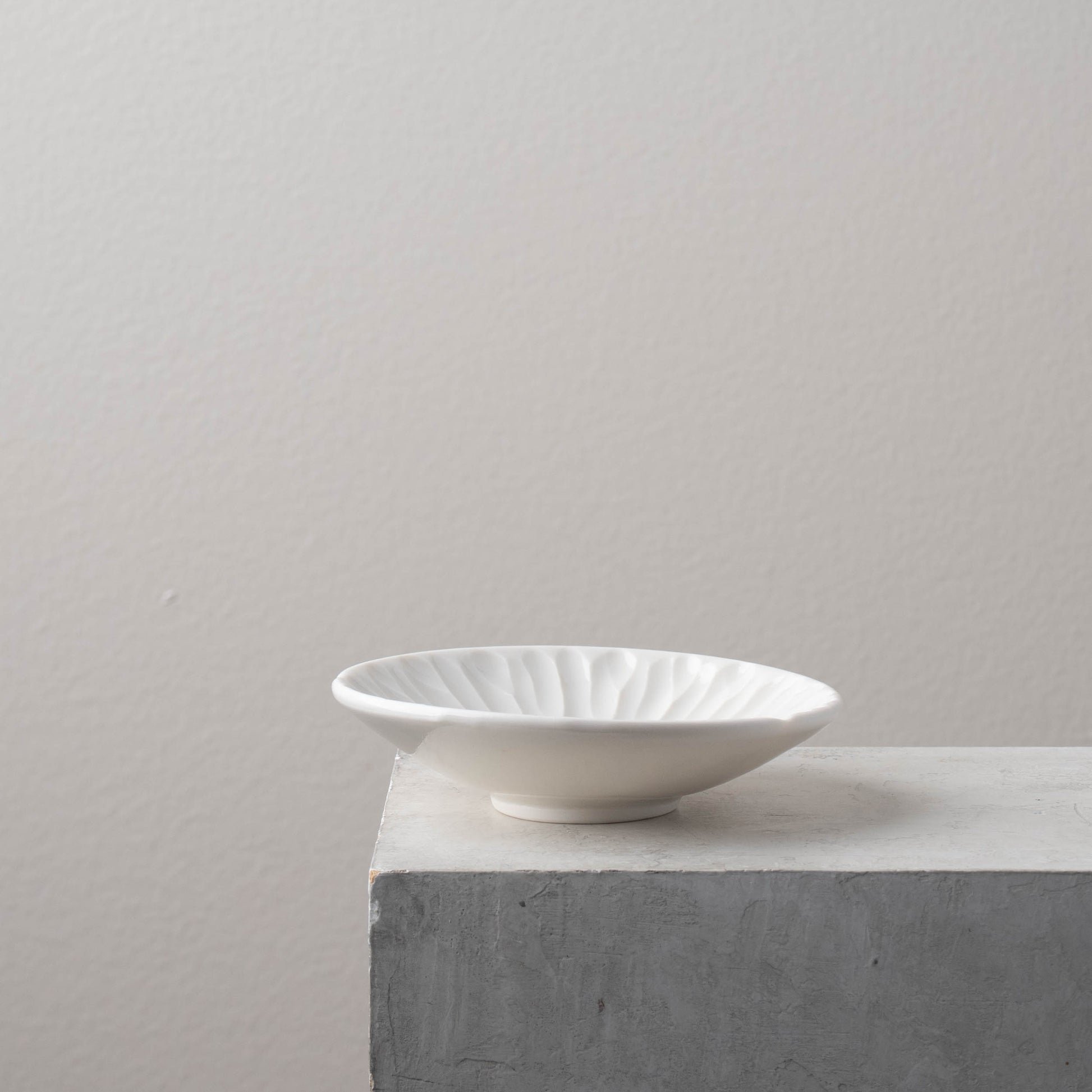 Wheel thrown porcelain dish finished with hand-fluted details. Made for a wagashi-tea pairing event for Sugoi Sweets.