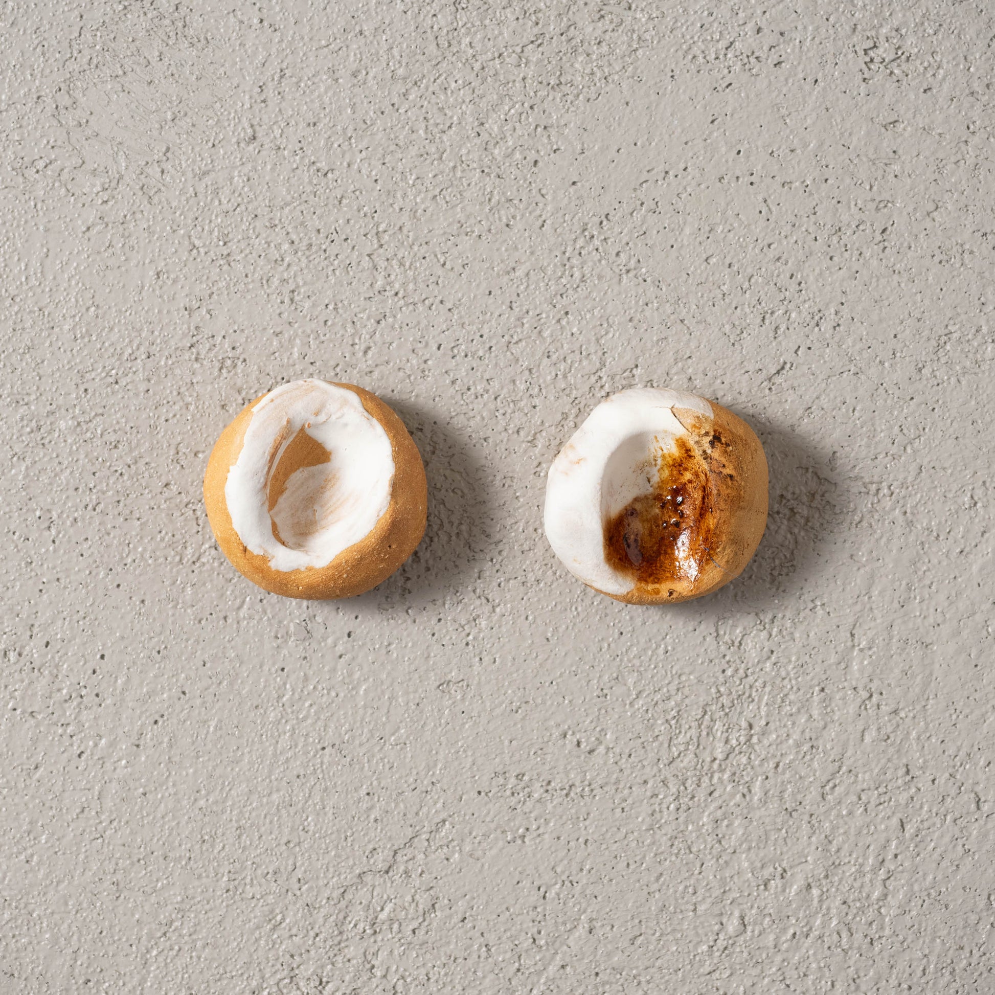 The photo with two thumbprint rocks shows the result of burning an incense brick. These products leave oily residues that are hard to clean off, regardless of whether the piece is glazed.